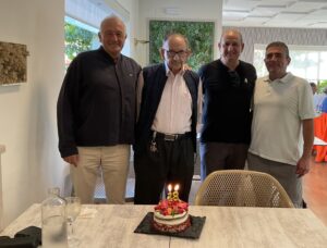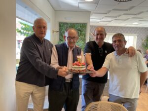 Ese equipo ha materializado la celebración del 18º aniversario de la creación de AMESETE organizando un sencillo pero entrañable acto hace unas pocas horas ofreciendo al presidente una exquisita tarta con las velas encendidas del 18. Nada “oficial”, pues el acto principal previsto para el día de hoy ha debido retrasarse, por problemas de agenda del coronel director y de otros miembros de la Junta Directiva, hasta el próximo día 24.