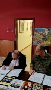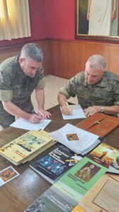 El presidente, por su parte, emplazó al director de la Sala-Museo para realizar juntos un estudio de las dos masivas entregas de libros realizadas para extraer conclusiones sobre el quehacer de los suboficiales en el actual ámbito periodístico y literario, con objeto de dar a conocer a la sociedad civil y, porque no, también, a la militar, el potencial cultural que supone para el Ejército de Tierra y, por extensión, a la Cultura de Defensa, la Escala.